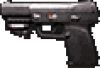 A Sem--auto pistol firing 5.7mm armour piercing rounds; Comes with a laser-sight and 20 round mag.