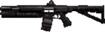 A unique double-barreled assault rifle with the dual magazine weld. Fires two shots at once; it also comes attached with 40mm cased grenade launcher and a holographic sight.