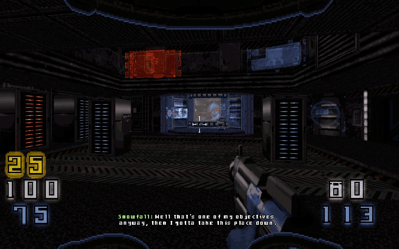 A strange signal composed of neutrinos was picked up by a space observation center located near the South pole. After 6 years of searching, the source was traced back to its location at Umbriel, one of the moons of Uranus. Your objective is to de-activate the transmitter, to avoid drawing attention to Sol system from unknown alien species. However, first you must download the blueprints and schematics of the device. Whilst risky, this powerful and advanced tech is too valuable to destroy completely.