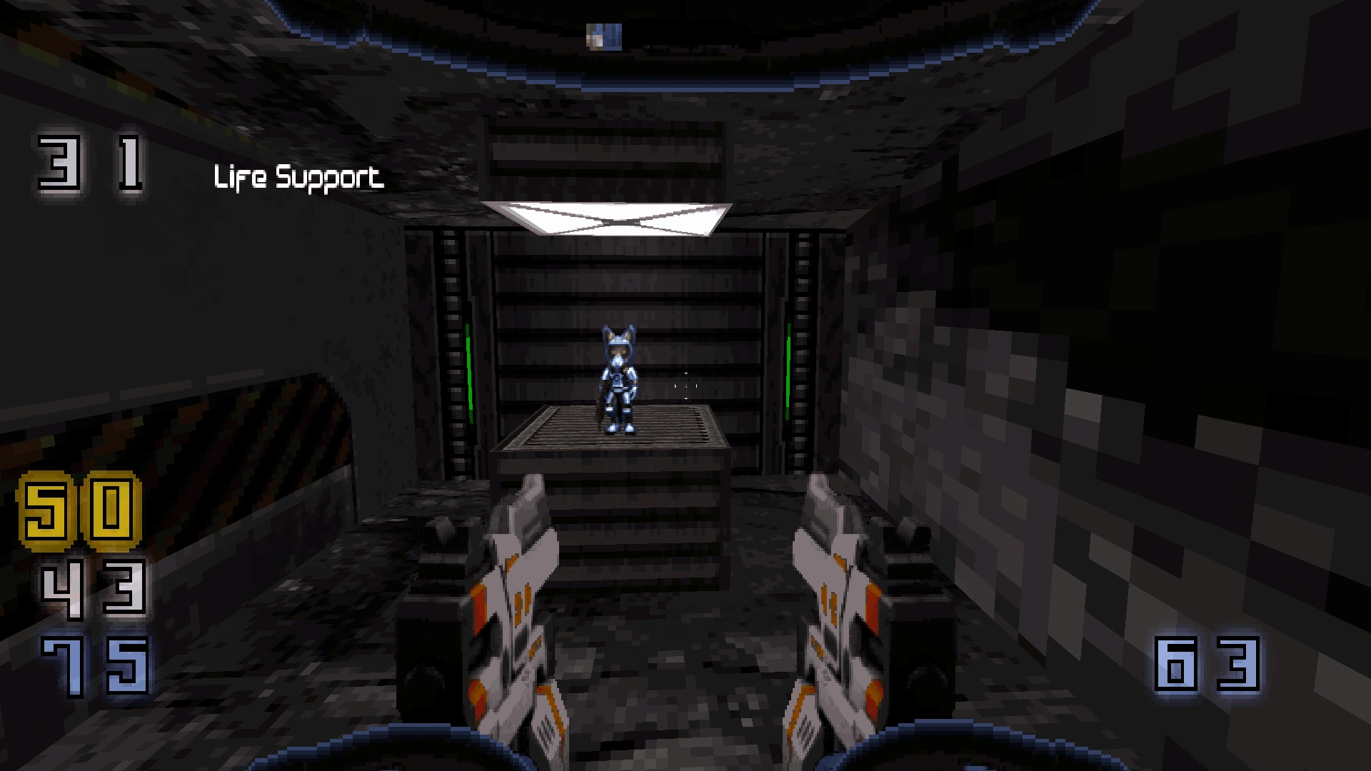 On the bottom floor, before going into the reactor, look up and jump into the gap in the ceiling grates for a lightning gun and a toilet.