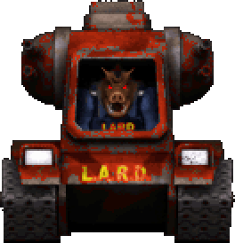 The Pig Cop tank is a small armoured vehicle that has two double-barrelled guns attached to the sides. These guns fire bullets when the opponent is up close, but when they are far away, it will fire laser blasts. The tank also has a long-range mortar on its roof.