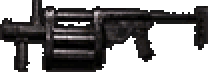 This weapon is a rotary grenade launcher. It boasts 6 grenades when fully loaded. Each grenade will fly in an arc trajectory and bounce 4 times before exploding, or explode immediately when impacting an enemy or some destructible object. They are fairly powerful as they can kill a Battlelord in 5 direct hits. The explosion has the default splash damage area. It has a good rate of fire of barely half a second but it has a lengthy reloading time of roughly 5 full seconds for all 6 grenades.