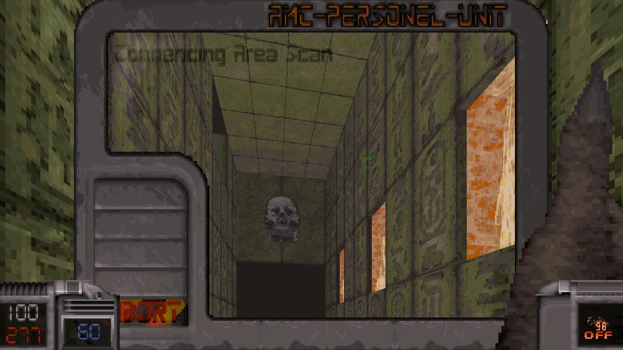 - 3. On the top floor of the outermost pyramid ring, in the green hallway, shoot a switch near the ceiling to open the secret (use the scanner).