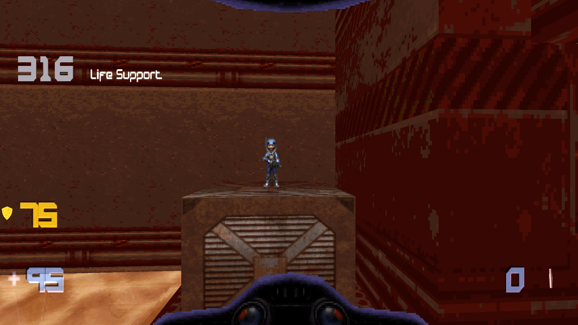 Now go through the river and past all the monsters. Climb up the crushing pillars and eventually to tunnel with a machine needing a blue keycard. Go left and go up the ladder with MJ12 Soldiers. You can find the blue keycard in the larger room on a wall. Go back and use it. Go down and left and follow the blue beacons. Climb up the building and go to the end of it which as a small gap in the fence. Use the elevator to head back up. Move you way up the building where Jane and Wheaton are waiting for you.